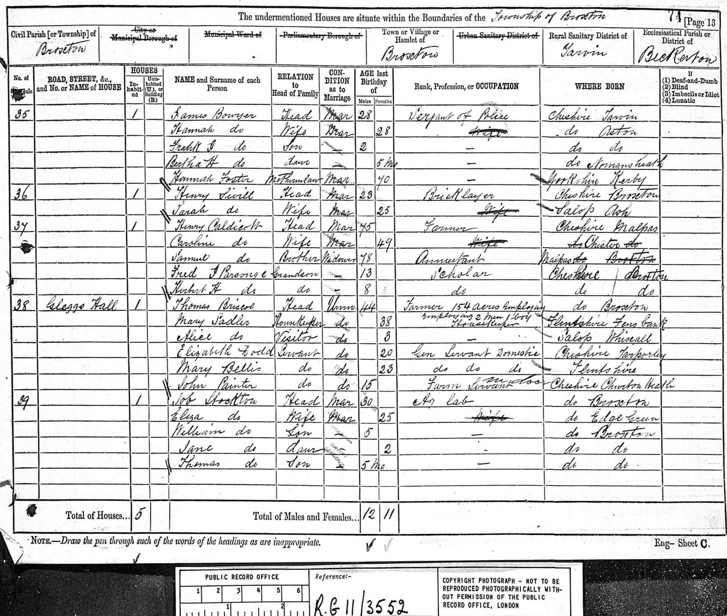 | Marriage* | He married Sarah Broad, daughter of John Broad and Sarah Hockenhull, on 5 September 1838 at Parish Church, Astbury, Cheshire. |