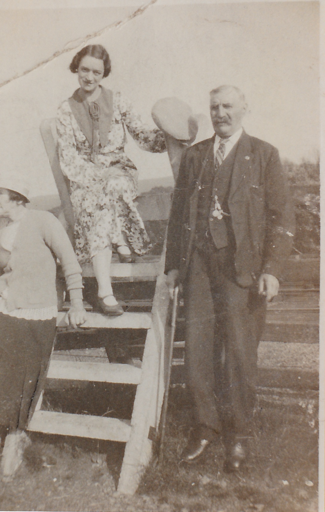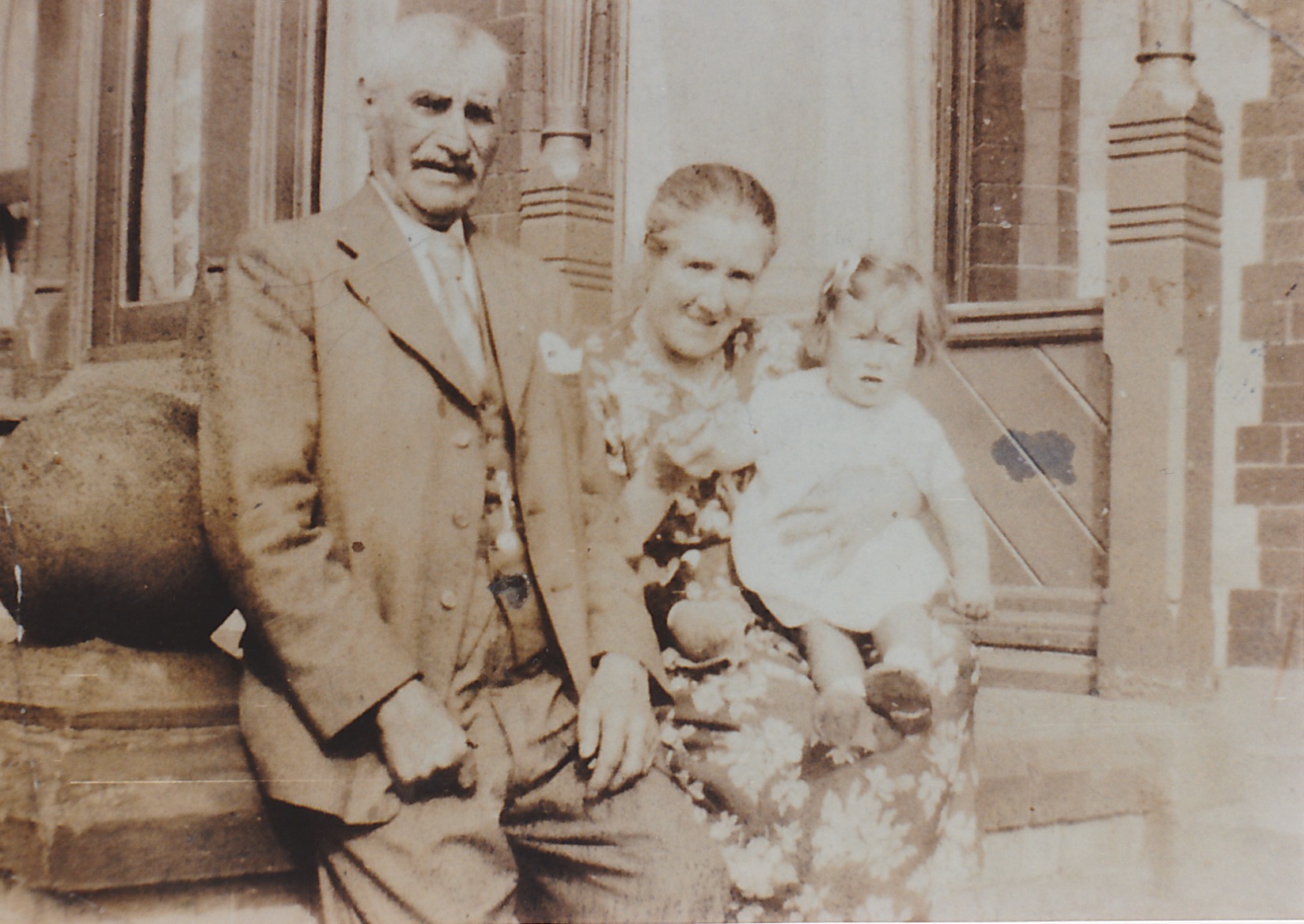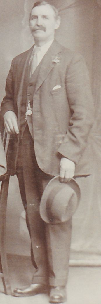Herbert Harold Parsonage was born on 23 March 1872 at Broxton, Cheshire. He appeared on the 1881 Census in Broxton, Cheshire, and Henry Caldicott, Caroline (?), Samuel Caldicott and Frederick John Parsonage were living in the same household; Henry Caldicott was a farmer, aged 75 years at the time, Caroline was his wife and Samuel was his brother. Henry Caldicott described Herbert and Frederick as his grandsons, although this is not likely to be strictly correct. It appears that the boys' mother had died in 1875 and their father was living alone in Yorkshire. He lived with a Mr & Mrs Ashton at the Manor House, Tarporley, Cheshire and was brought up by them according to Lillian Dean. This may have been after the death of Henry Caldicott. Herbert Harold Parsonage appeared on the 1891 Census in, Nantwich, Cheshire, ; Herbert was described as a farm servant and was living with a farming family by the name Gregory. Herbert Harold Parsonage married Esther Ann Morris, daughter of Oliver Morris and Emily White, on 14 March 1896 at Holy Trinity, Hulme, Manchester, Lancashire, and the ceremony was witnessed by William Buxton Rogers and Fanny Gill; the marriage certificate shows Herbert and Esther were both living at 64 Dale Street, Hulme at the time and that Herbert was a forgeman. Herbert Harold Parsonage appeared on the 1901 Census in 3 Armstrong Street, Horwich, Bolton, Lancashire, and Esther Ann Morris, Agnes Ada Parsonage and Edith Emily Parsonage were living in the same household; Herbert was described as a Gasmaker at Railway Engine Works. There were two lodgers also living with the family. Herbert Harold Parsonage appeared on the 1911 Census in, St Helens, Lancashire, , and Esther Ann Parsonage, Agnes Ada Parsonage, Edith Emily Parsonage, Oliver Parsonage and Eric Parsonage were living in the same household; Herbert was described as a Gas Maker at the Lead Smelting Company, and there were two lodgers James Taylor and John Ashton. The census record shows that there were 10 children that had been born alive and just four of them living at the time. There were 8 persons in the house sharing four rooms which included any kitchen. He was living at 65 Peter Street, St Helens at the time of William Henry's birth and his occupation was a gas maker at the Lead Works. On 8 September 1925 at Horwich, Bolton, Lancashire, Herbert Harold Parsonage was a railway pumpman. He lived on 26 October 1925 at 9 Oldham Street, Bolton, Lancashire; and was still living there in 1927 when his daughter Edith was married. He may also have lived at 226 Deane Road, Bolton at some time as this address is on the rear of an old photograph ( in the possession of Barbara Jager). On 1 March 1927 Herbert Harold Parsonage was a labourer. Barbara Jager-Smith recalls Herbert took a light job when he moved from Bolton to Prestatyn about 1935. She believes he worked at the station possibly something to do with the water tower as he took the kids up it when they visited. He used to caddy on the local golf course and liked to pick up bargains at house sales. He had old bibles and bound copies of Victorian magazines that he had bought. Herbert's house was called Cartref, No. 87 Carodoc Rd (the first house they lived at before Albert Terrace). There was no running water except a cold tap outside, there was gas lighting and the toilet was a hole in a piece of wood over a drain. Herbert was a keen gardener, growing vegetables and flowers. He married Annie Davies in 1940. Herbert Harold Parsonage died on 8 June 1943 at Prestatyn, Flintshire, at age 71. He was buried in June 1943 at Coed Bell Cemetary, Gronant, Prestatyn, Flintshire; His grandson David Parsonage remembers that Herbert died at Prestatyn and David went with his sister Irene to the funeral at Gronnant cemetary. While they were there he recalls the small railway terraces where Herbert lived and that he thought it odd as a child that the back garden was actually across the other side of the back street through a gate. This may have been 7 Albert Terrace, Prestatyn, where Herbert was certainly living in 1939 when his wife Esther died. Herbert was also commemorated on the grave of his wife, Esther and their daughter Edith in Warton Cemetary.