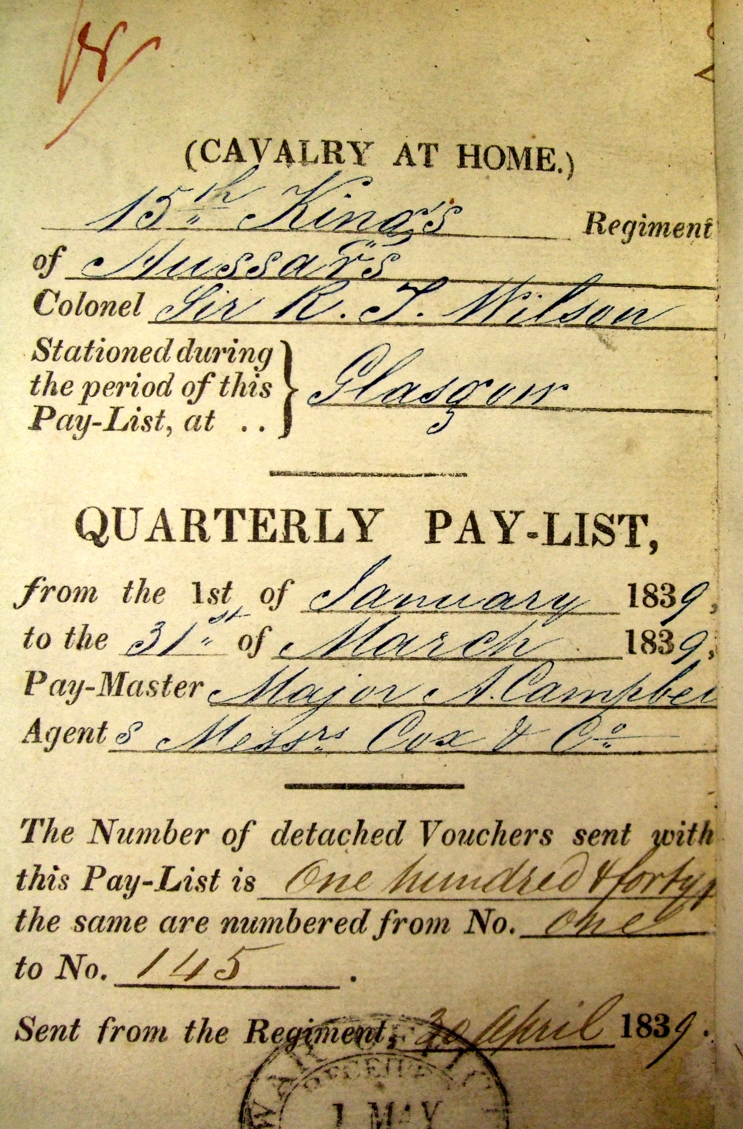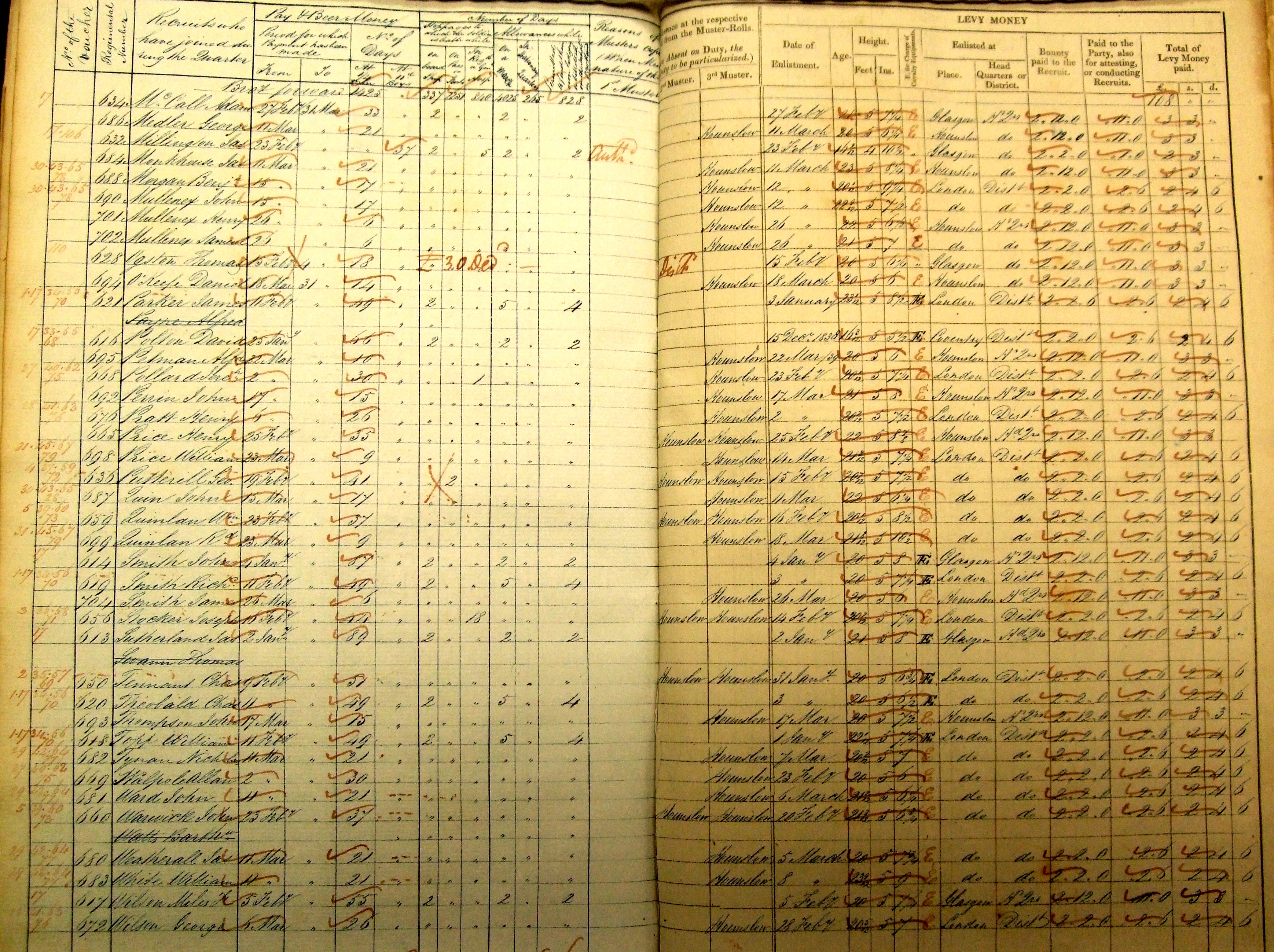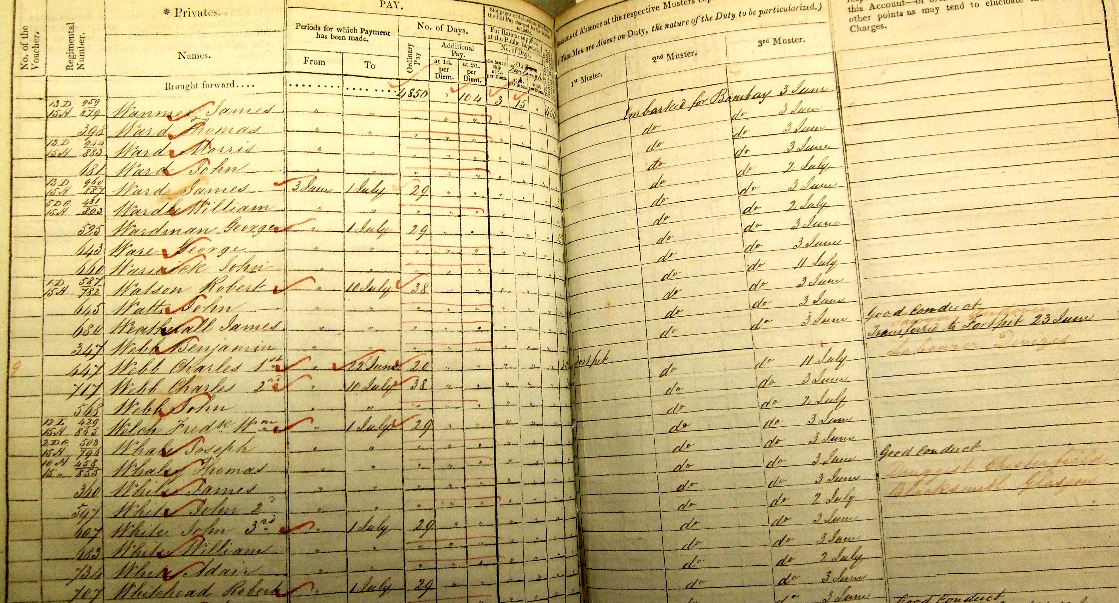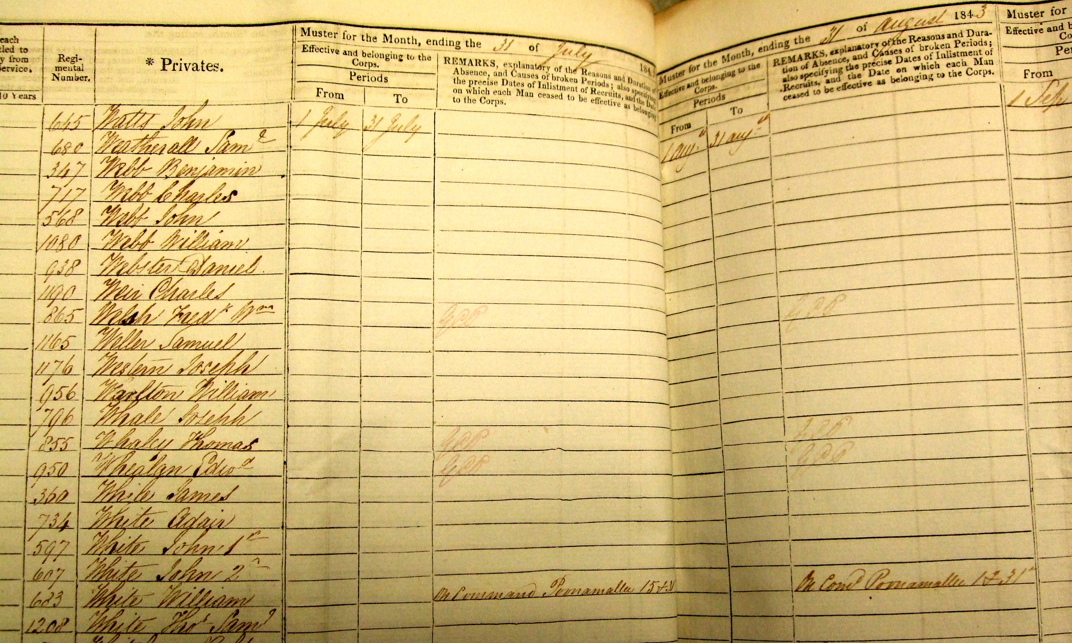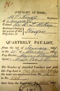 He was at the bottom of a page headed "Recruits who have joined during the Quarter" and, as is usual for muster rolls at the time, details were minimal: "683 White William, paid from 11th March 1839. Enlisted: 8th March 1839. Age on enlistment: 23 years 9 months [which suggests he was born in June 1815]. Height: 5ft 9ins. Place of Enlistment: London."